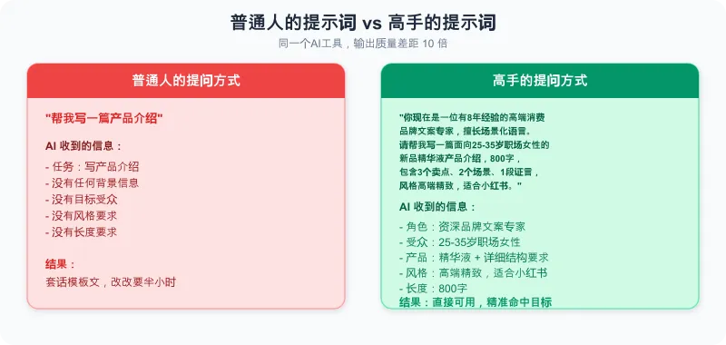 同样的AI工具,不同的提问方式,输出质量相差十万八千里。