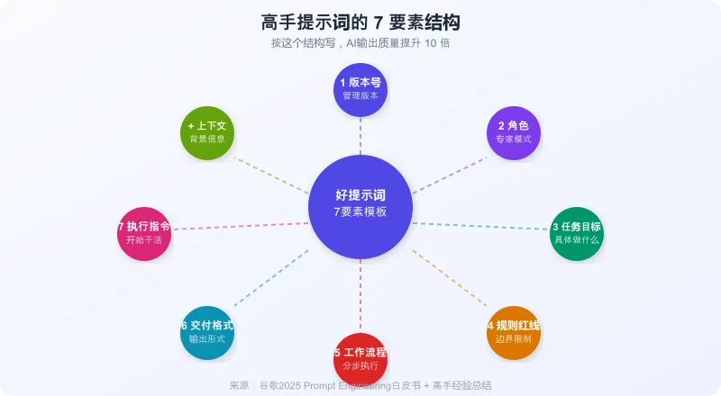 从今天起,每次向AI提问前,先在脑子里过一遍7要素:角色、任务、规则、流程、格式——5秒钟的思考,换来10倍质量的输出。