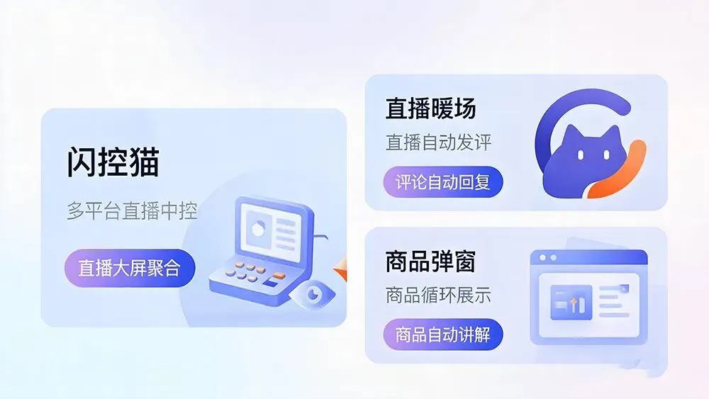 第二层,是解决“管得住”的问题,也就是操作协同。光看见还不够,你得能快速反应。直播间里,商品弹窗、发福袋、回复评论,这些都是需要秒级响应的动作。靠人工去每个平台后台点,延迟高,还容易手滑点错。这就像你开车,油门、刹车、方向盘是分开的三个踏板,你得用三只脚去踩,这车能开得稳吗?真正的协同,是让这些高频操作自动化、流程化。闪控猫这类工具的价值就在这里,它可以设置商品自动循环弹窗,讲解完A品自动弹B品;可以设置多组发评规则,顺序或随机发送,保持评论区热度;更关键的是关键词自动回评,你可以设置100条规则,比如用户问“价格”,系统0-100秒内自动回复设定好的话术。我见过一个服装带货的达人,她一个人管三个平台的直播间,靠的就是这套自动化。她提前设置好“尺码”、“材质”、“优惠”等关键词的自动回复,直播时就能专心讲解,互动率反而比以前两个人盯的时候还高。这就是把“踩三个踏板”变成了“一个方向盘集成控制”,操作精准又省力。