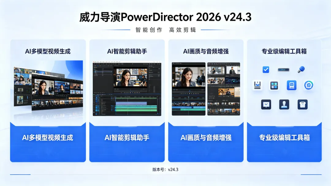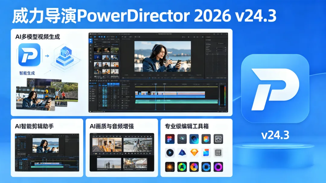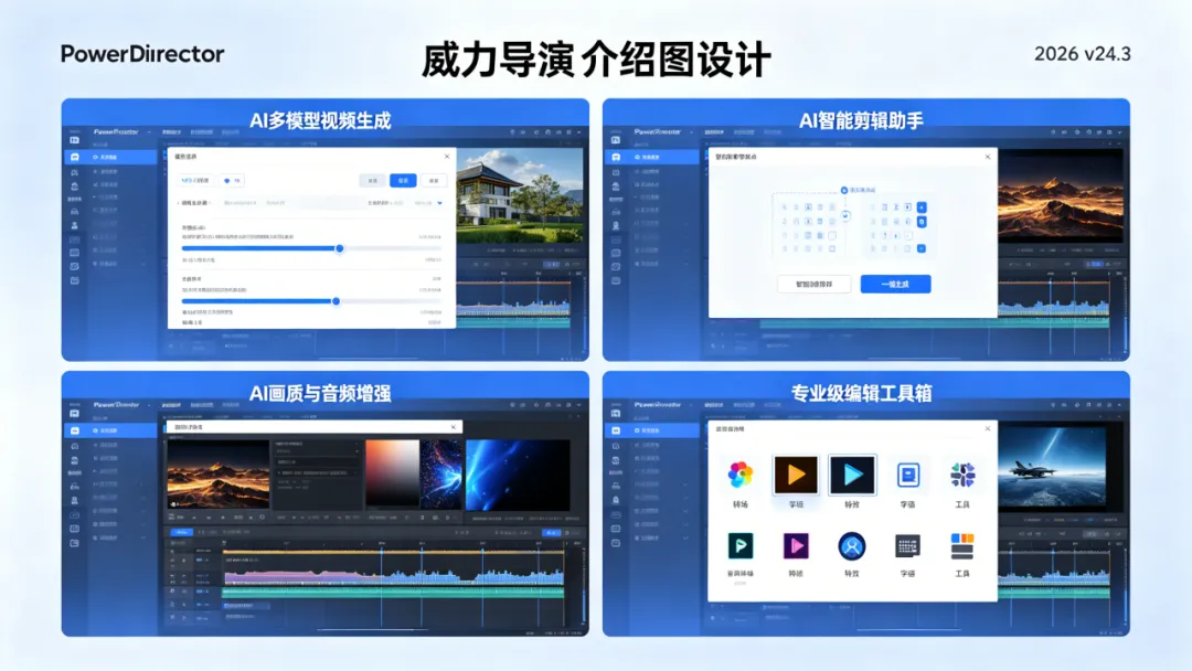 文字生成视频:内置 Kling 2.6、Vidu Q2、Sora-2 等主流模型CyberLink,支持标准 / 专业双模式,输入文案一键生成带镜头、运镜、配乐的完整短片。