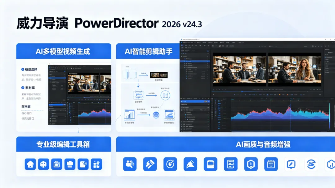 AI 文本剪辑:输入 “删除 3-5 秒”“添加转场”“增强画质”,AI 直接执行指令CyberLink。