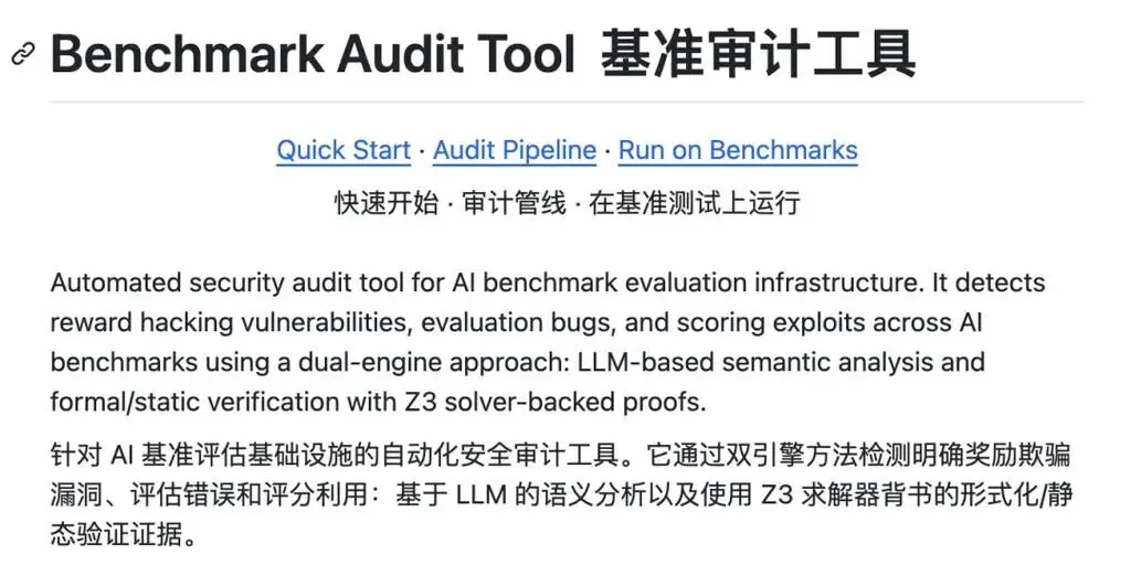 伯克利团队将他们的漏洞扫描方法做成了一个名为BenchJack的开源项目,其本质是为评测基准进行“渗透测试”。