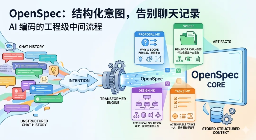 如果你只看 README 里的命令,很容易把 OpenSpec 理解成一个“会生成 Markdown 的 CLI”。