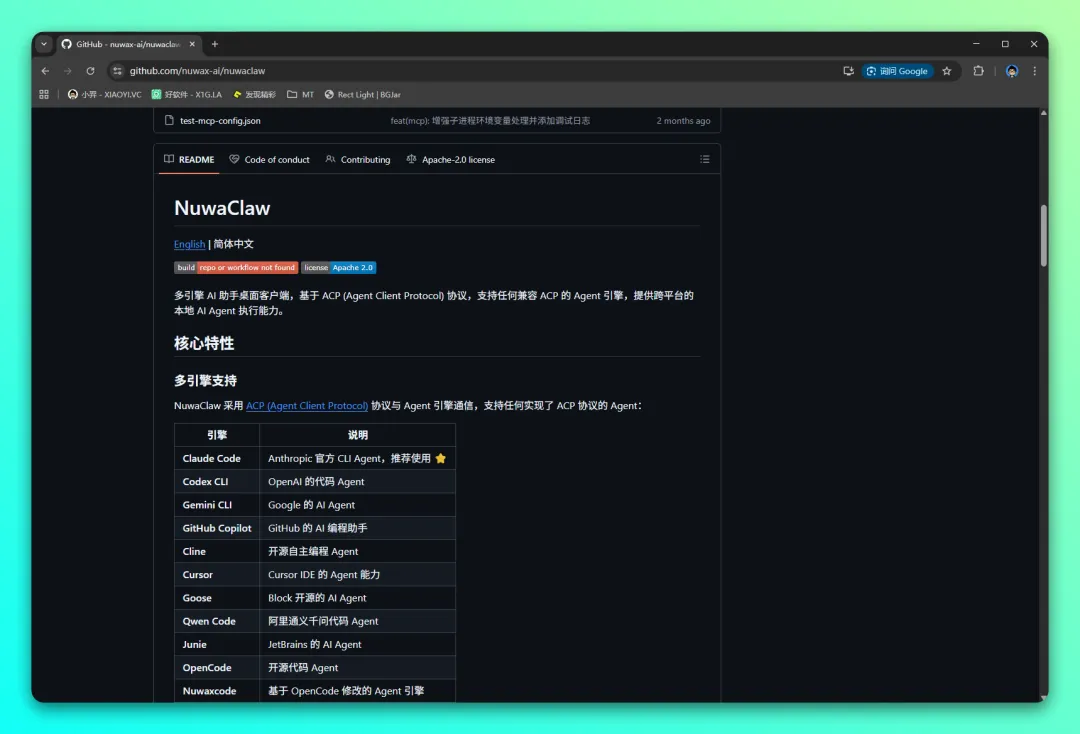 免费开源无门槛多引擎 AI 助手桌面客户端「NuwaClaw」基于 ACP (Agent Client Protocol) 协议,支持任何兼容 ACP 的 Agent 引擎,提供跨平台的本地 AI Agent 执行能力。纯正国产自研,非 OpenClaw 改款,代码 100% 全开源可审查,安全可控。