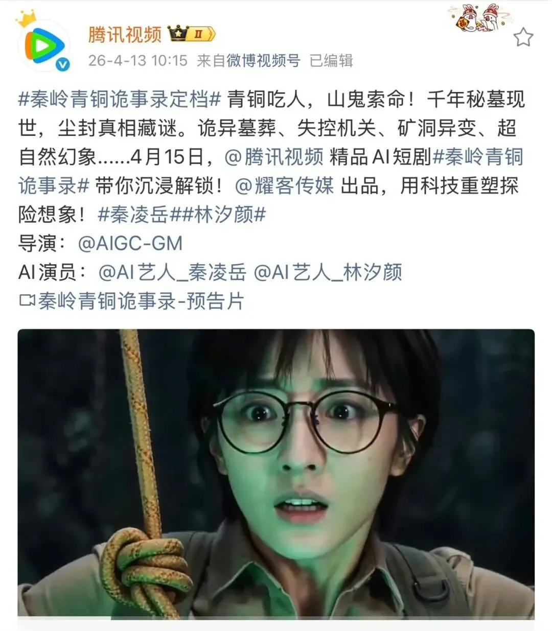 但那部AI剧《秦岭青铜诡事录》,还是按计划在4月上线了。