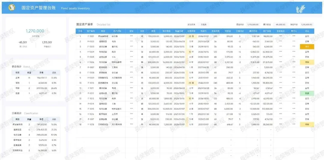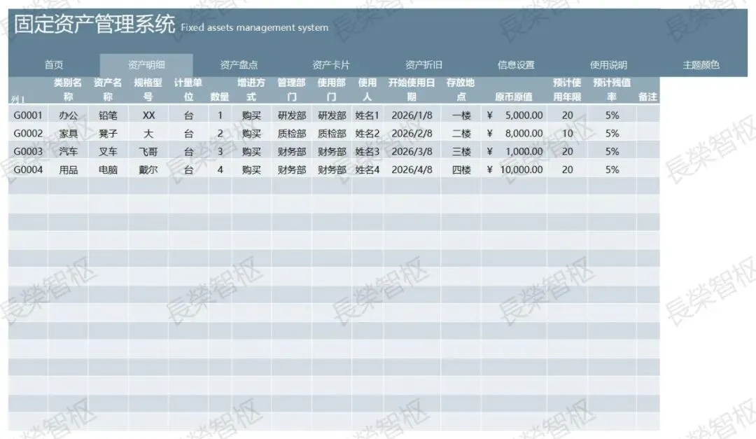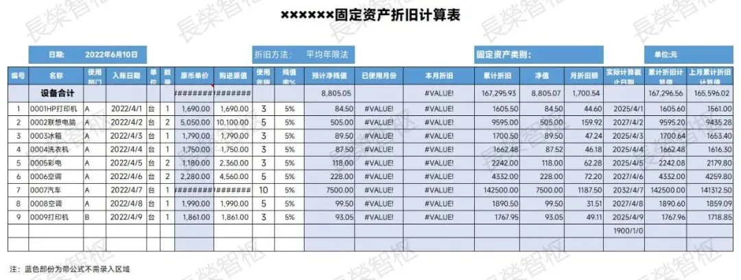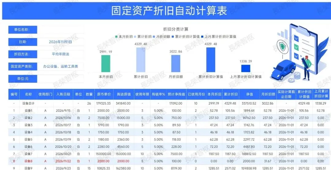 蓝色简约固定资产折旧管理表(自动计算).xlsx