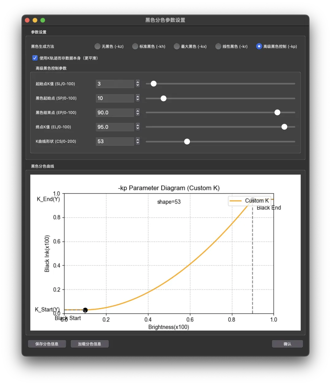 1. 黑色分色重新设计,加入了曲线图示,实现更精准的黑色控制;