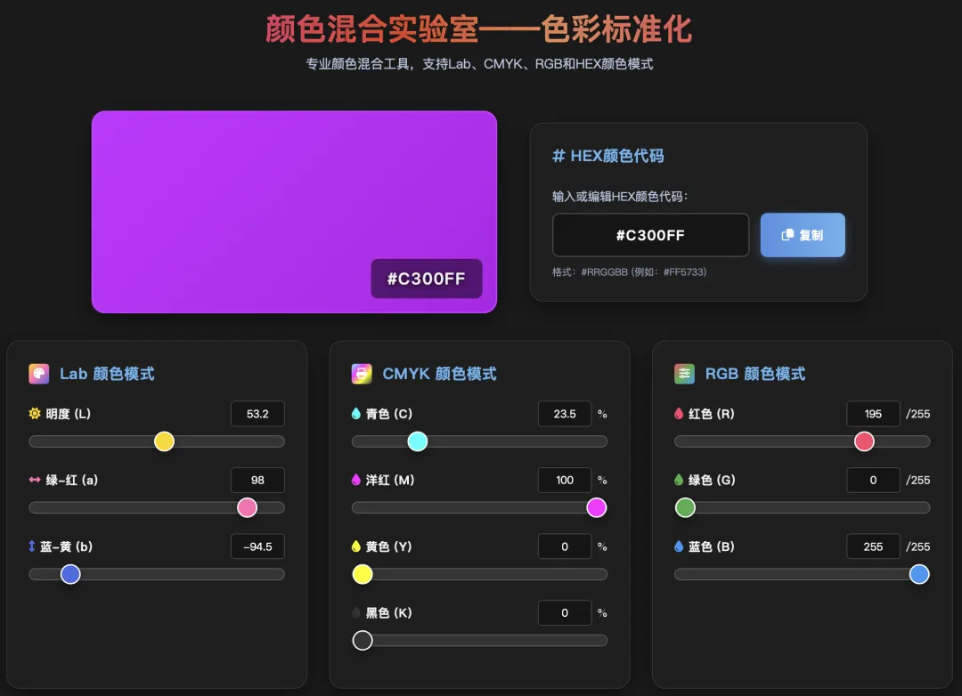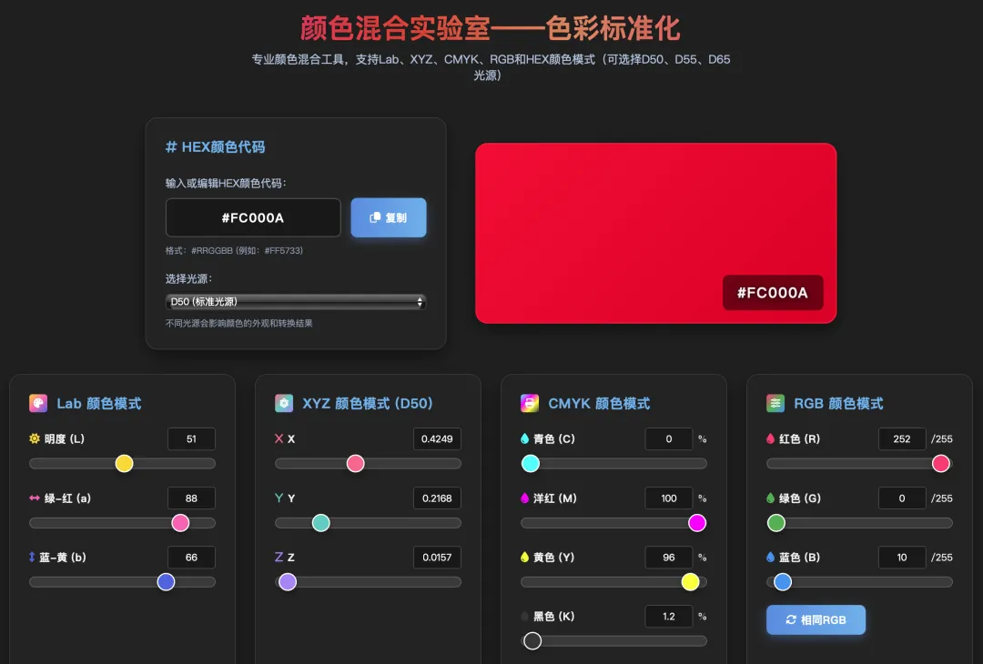 3. Lab HEX XYZ RGB CMYK色彩演示;
