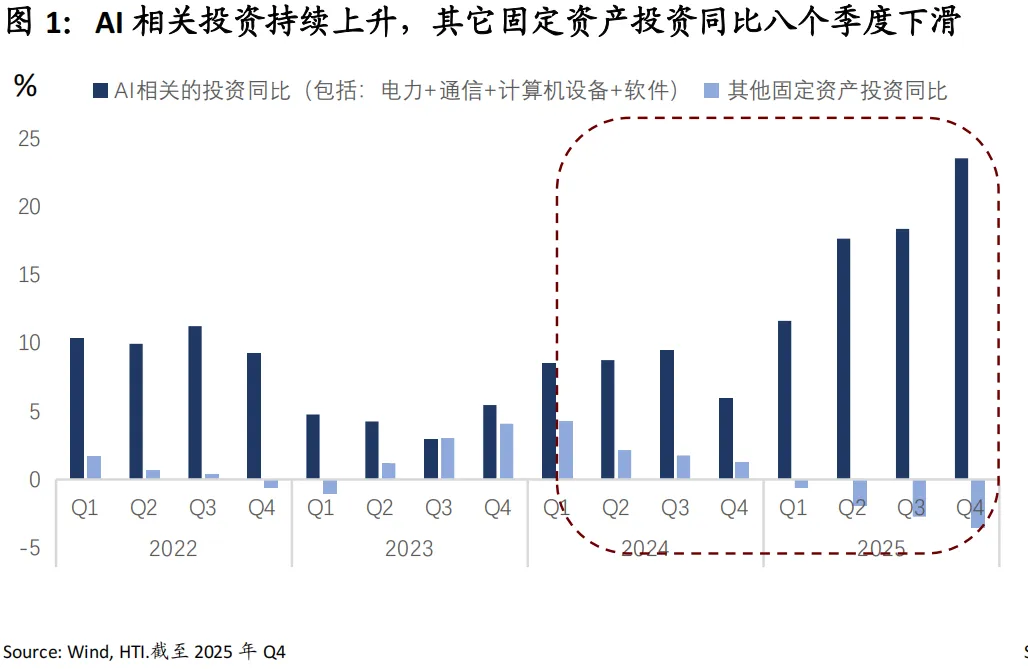 作为经济新动能的核心,AI产业当前正面临高企融资成本的直接制约,且近期私募信贷领域的风险敞口扩大,或将通过信用收缩路径传导至AI产业链。参考2000年互联网泡沫时期的历史经验,新动能的成型与扩散高度依赖于持续的宽信用与低利率环境。若要确保美国经济动能的平稳切换,需要货币政策向更加宽松的维度靠拢,为产业升级创造必要的金融条件。