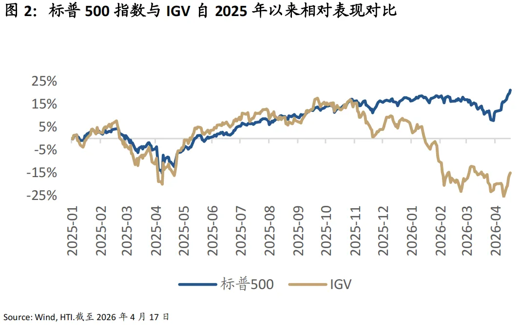 从GDP贡献结构来看,AI相关产业的渗透率与边际贡献已攀升至历史高位,与传统经济部门动能的持续下滑形成鲜明对比(图1)。回顾2025年,全球大类资产的普涨主要受益于流动性扩张与AI产业趋势的共振,然而步入2026年,AI叙事逻辑出现逆转,AI的快速迭代开始对其它行业的商业模式产生替代的担忧(图2),并压制了传统部门的增长预期。
