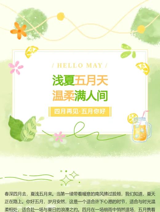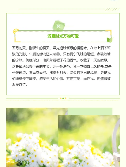 浅夏五月天 温柔满人间公众号图文模板ID:12344,来源于小墨鹰编辑器