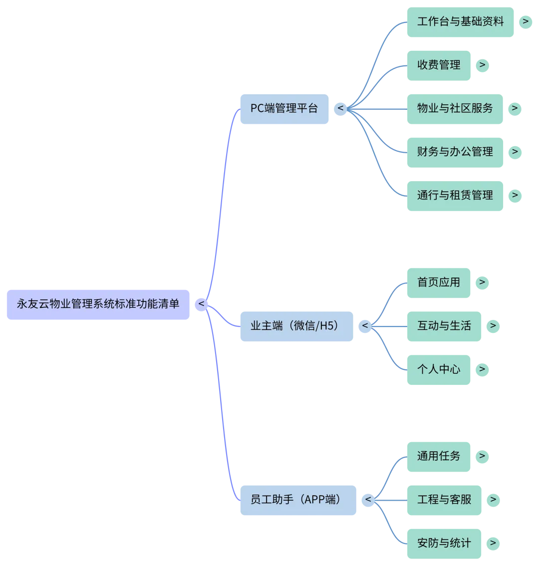 为了助力物业企业实现数字化转型,提升管理效率与服务质量,永友云物业软件现正式发布2026标准产品功能清单。本次清单涵盖了管理PC端、业主微信端及员工助手APP端,构建了全方位、全场景的数字化物业管理闭环。