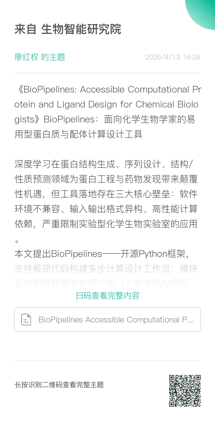 1.biopipelines的蛋白设计工具链,可作为AI Drug Discovery 2.0模型层的补充,强化系统在蛋白/抗体设计领域的工具深度与场景适配性;
