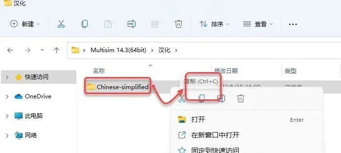 19.鼠标右击【Chinese-simplified】选择【复制】。