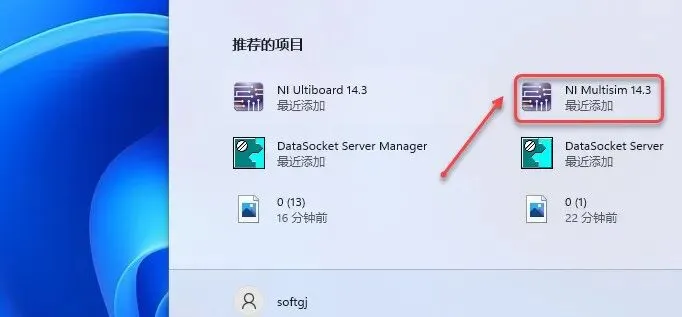 24.点击桌面任务栏中的【开始图标】,双击【NI Multisim 14.3】图标启动软件。