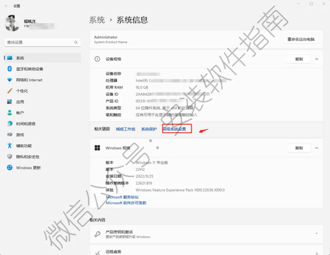 8、点高级系统设置