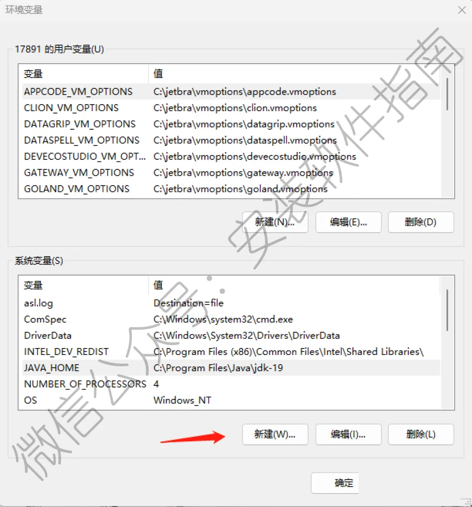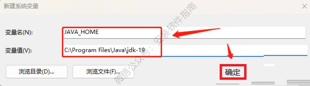 11.变量名输入JAVA_HOME,输入(第4步)jdk的安装路径,提示:JDK安装路径是C:\Program Files\Java\jdk-19然后点击确定