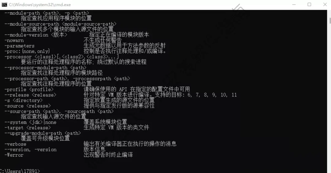21.输入javac然后按键盘上面的回车键,得到下面的信息