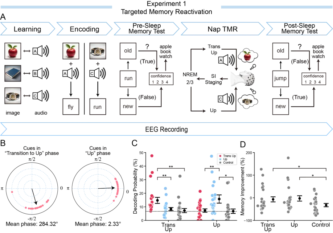 越来越多研究表明,人们在白天形成的经验,会在睡眠中被重新激活和“重播” (replay),这一过程被认为是记忆巩固的重要机制。但是,与能够直接记录神经元放电的动物研究不同,人类睡眠研究主要依赖头皮脑电图(EEG)。而睡眠脑电中最显著的,往往是慢振荡等大幅度节律活动,这些强背景信号很容易掩盖与具体记忆内容相关的微弱表征,也使基于清醒状态训练的解码器难以直接泛化到睡眠状态。