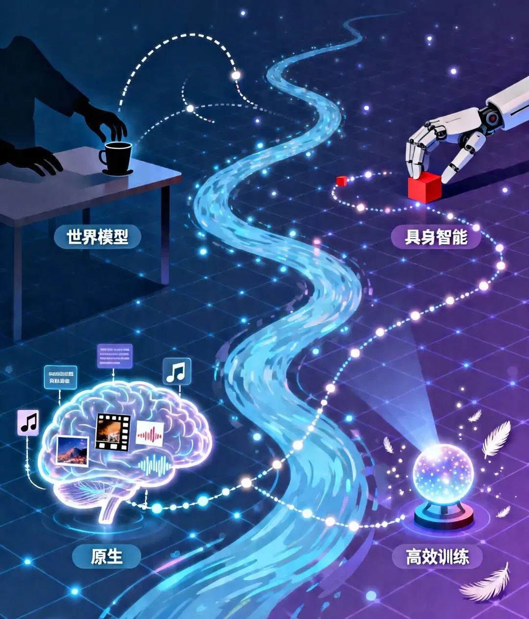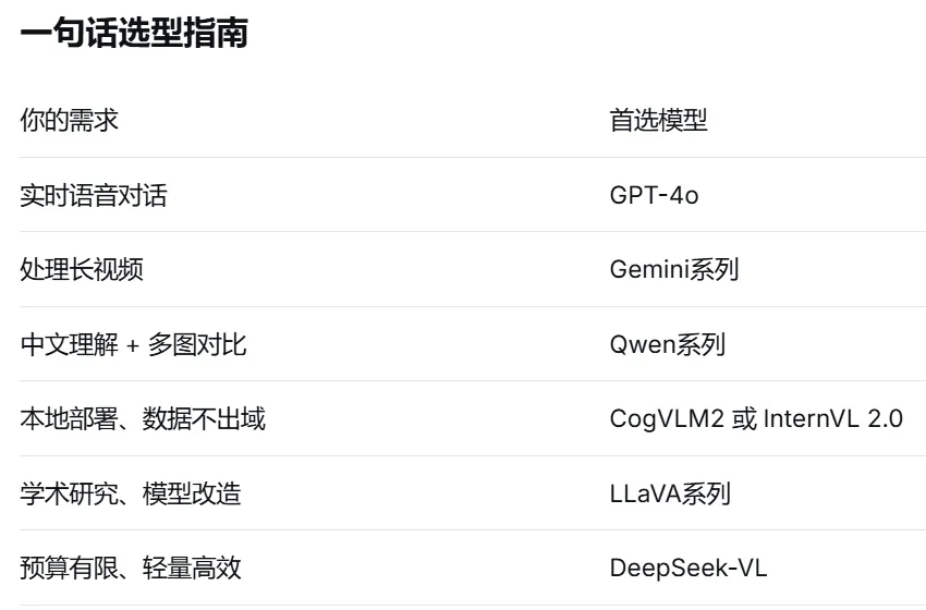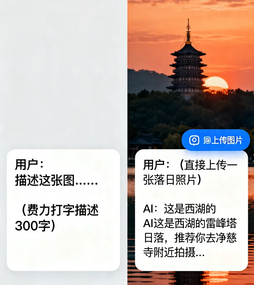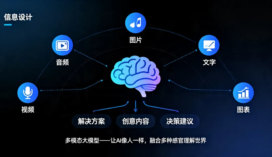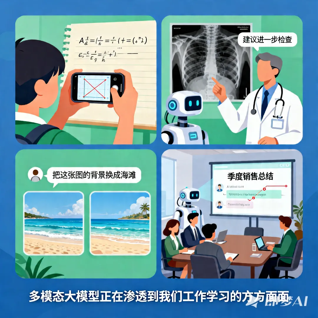 基本概念如果说是大语言模型让AI学会了“读书”和“回话”,那么多模态大模型就是让AI同时学会了“看图”、“听话”、“读书”、“回话”和“写字”等。在前面的教程中,我们介绍了大语言模型(Large Language Model,简称LLM)——它能够理解并生成文字。像ChatGPT这样的产品已经能和我们流畅地对话、写邮件、改代码。但是,纯文字的交流根本没法满足我们对AI发展的所有期待。试想一下,当你拍下一张晚霞的照片,想问AI“今天适合去哪里看这样的日落”,却要费力地去打字描述“天空是橙色的,云是一缕一缕的......”;当你收到一张满是数据图表的截图,想让AI帮你分析,却发现它“看不见”——这是大语言模型的天然局限,因为它只能读懂并生成文字,却没有“视觉”和“听觉”。而多模态大模型(Large Multimodal Model,简称LMM)的出现,正是为了弥补这个不足。何为多模态?人类认识世界从来不是靠单一感官的。我们看到一张笑脸、听到一句“谢谢”、读到一封邮件,这些信息是融合在一起的。AI想要真正理解世界,也必须像人一样,同时处理多种类型的信息——文字、图像、音视频等,这些不同的信息形式被称为“模态”。多模态模型,就是能同时理解和处理多种模态信息的AI模型,它不仅能“读字”,还能“看图、听声、看视频”。为了更好地理解多模态大模型,让我们用一个真实的日常工作场景来进行抛砖引玉:上午10点,你收到客户发来的一张产品故障图片、一张电路图截图、还有一条60秒的语音说明。你需要理解所有信息,然后回复一份解决方案。在“纯文字AI”时代,你需要:打字转述照片内容-->手动描述电路图-->听懂语音内容-->整合所有信息-->向AI提问。一套流程下来,至少需要15分钟。而在多模态时代,你只需要:上传照片+截图+语音-->直接提问:“根据这些信息,最可能的故障原因是什么?”,AI可能在30秒内就能给出答案,效率大大提升!多模态大模型的意义,不只是让AI多了一个“看”的功能这么简单,而是让AI能用和人相似的方式来感知世界。这意味着它不再需要“翻译”你的需求为文字就能进行自然的交互,还能从图像的细节里提炼出更准确的理解,胜过千言万语。出现和进化在深度学习早期,图像识别模型(如CNN)和语言模型(如RNN)是各自独立的。你有一个能识图的模型,和一个能生成句子的模型,但识图模型无法告诉语言模型“我看到了什么”,语言模型也无法向识图模型提问,它们像住在不同岛屿上的人,说着不同的语言。2010年代中期,研究人员开始搭建连接不同模态的“桥梁”。CLIP模型(OpenAI,2021年)是一个里程碑——它通过4亿张图文配对数据,学会了“一张图片和一段文字是不是描述同一件事情”。从此,AI可以“看图说话”了。2022年底,随着ChatGPT的横空出世,研究人员猛然意识到:大模型本身已经进化为一个极其强大的“中枢大脑”——它擅长推理、理解指令与答案生成。于是,一个自然而然的构想浮出水面:能否为这个“大脑”装上“眼睛”和“耳朵”?沿着这一思路,多模态的主流技术路线应运而生:以预训练的大语言模型为核心,在其外部接入视觉编码器、音频编码器等模块,如同为大脑连接上处理图像的“视觉皮层”与处理声音的“听觉皮层”。这一架构,成为了当今绝大多数多模态大模型的基本范式。工作原理一个典型的多模态大模型究竟是如何工作的?我们可以从核心架构、关键技术和训练方式这三个层面来逐一展开剖析: