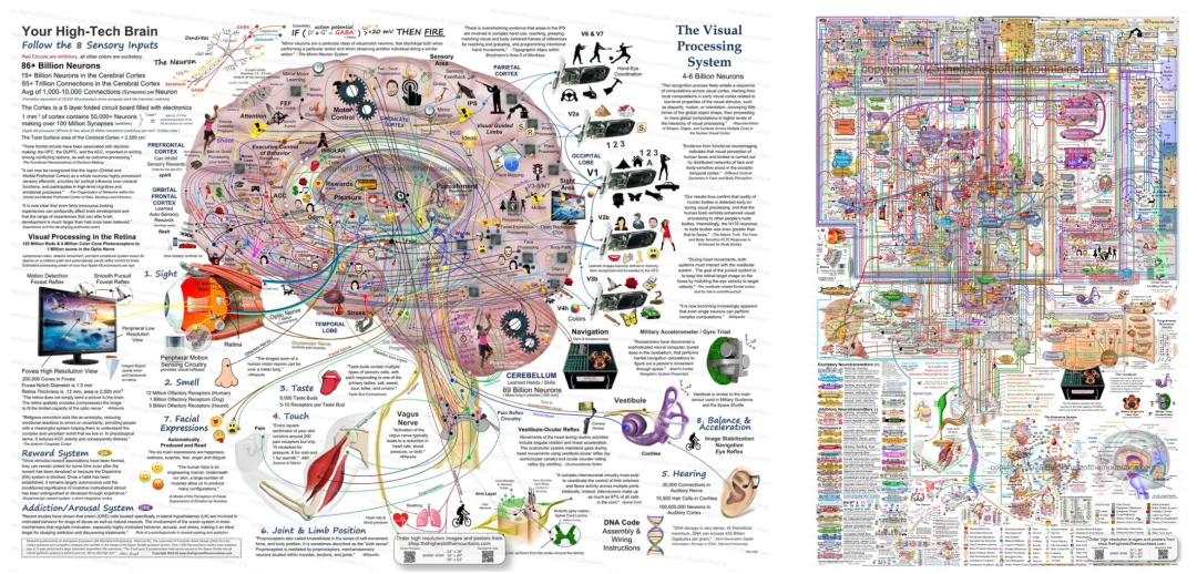 这个工程师在接触脑科学知识后,惊叹“我们每个人体内都蕴藏着的不可思议的科技”,“这可是百分之百的尖端工程技术,而不是什么随意的设计”。于是历时多年绘制,并不断有在更新。