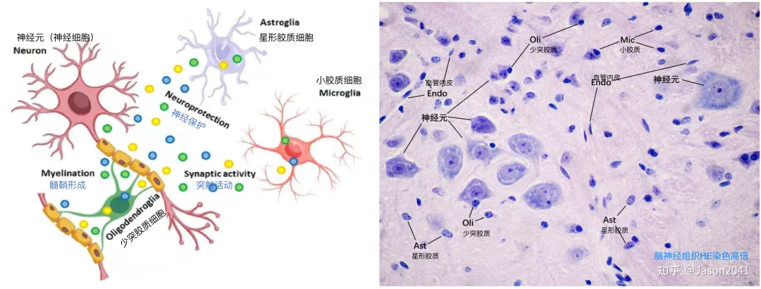 图源:网络图拼接,神经元细胞和胶质细胞的概念图、电镜图