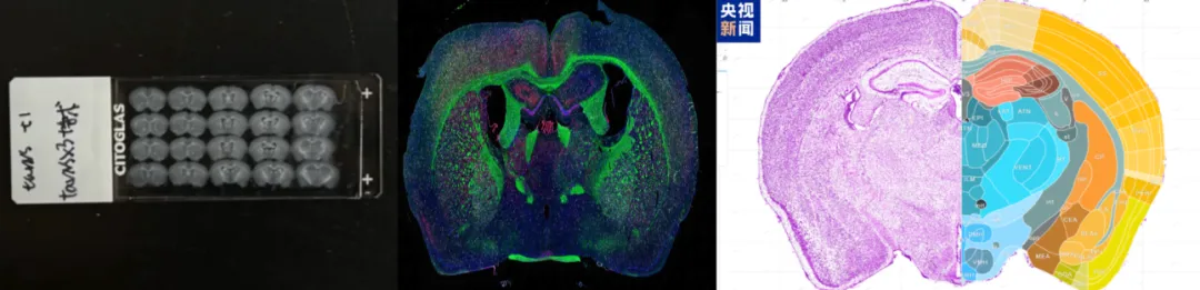先说终局,染色后,是一张图用不同颜色来表示不同内容,比如蓝色是细胞核、绿色是病毒表达、红色是特定蛋白或细胞。特别是病毒,从脑片中就能看自己之前那个复杂的注射病毒实验是否成功。