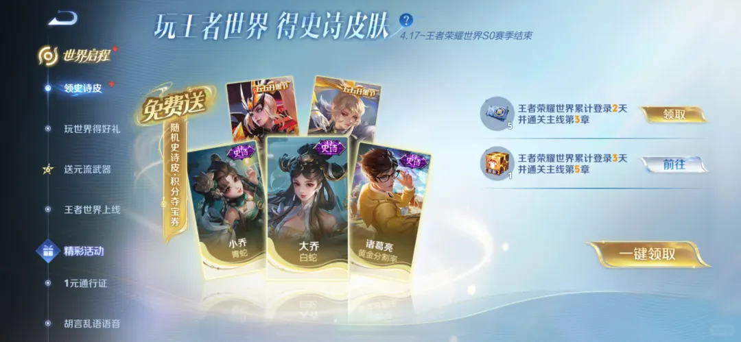 为了王者皮肤下载“王者荣耀世界”?这3类玩家不用纠结:天美这波羊毛不好薅最近不少人说起王者荣耀,都有两个重点话题,一个是最近的王者农场,简直比之前的麻将还要火,另一个就是王者荣耀世界了。说起这款游戏,很多玩家不是说玩法和体验,而是说:下载王者荣耀世界,白嫖5张积分夺宝券和免费史诗皮肤。可以说这次天美的这波引流做得还是可以的,毕竟确实不少人为了这两个奖励,都去下载硬肝了这个游戏,不过也有不少玩家,看了网上的玩家体验之后,还在纠结:为了这两个奖励,到底值不值得下载这游戏。今天菜菜给大家梳理一下,看看到底是否值得:首先要了解王者荣耀世界这款游戏,到底是玩什么?其实这就是王者荣耀IP的3D开放世界动作RPG,主要玩法是英雄战斗,世界地图探索,打副本和刷boss,算是一个慢养成游戏。那么这波羊毛薅起来到底是否值得呢?看奖励,其实还不错,登录两天加主线第三章是5张积分夺宝券,登录3天加主线第五章是免费史诗皮肤。然后看看需要付出的:首先这款游戏不少玩家已经下载了,很明显的安装包就已经有30G+,不少手机下载后直接黑屏。然后就是这款游戏是一款节奏比较慢的,如果要做完两个任务活动,至少要肝5小时,而且这是一款3D游戏,如果不习惯的话,可能会很晕想吐。那么哪些玩家适合冲呢?1、零氪微氪玩家5张积分夺宝券,其实是6张,虽然王者荣耀里面平时也能白嫖积分夺宝券,不过这肝几个小时就有5张积分夺宝券,还是很赚的。2、缺皮肤或者是差一个全皮的这次送的皮肤其实都是不错的,质量高,热度也高。所以如果你只是缺其中一个皮肤就全皮,或者就是想要里面的皮肤,还是很值得冲的。3、有时间就是喜欢玩各种游戏的如果就是喜欢这类型的游戏,或者是喜欢这种画风的,还是可以下载体验一下,一边体验游戏,还能免费拿奖励,一举两得。这个福利是真的,不过代价也是真的,所以也不用纠结,如果不喜欢玩这类型的,可以直接放弃,毕竟以后肯定还有其他的福利。大家有拿到两个奖励了吗,你觉得这波福利值不值?