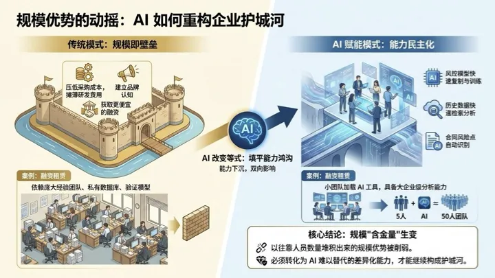 那么问题来了:如果规模优势在被削弱, AI 又成为每个企业都能获取的基础工具——什么才是 AI 时代真正的竞争壁垒?
