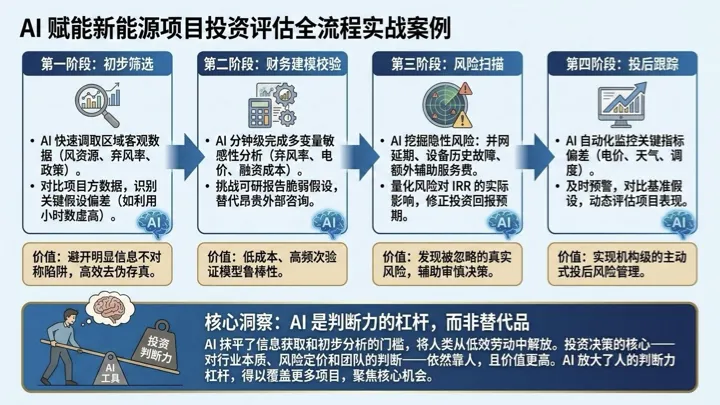 我自己在评估一个新能源项目要不要投的时候, AI 已经深度嵌入了整个流程。