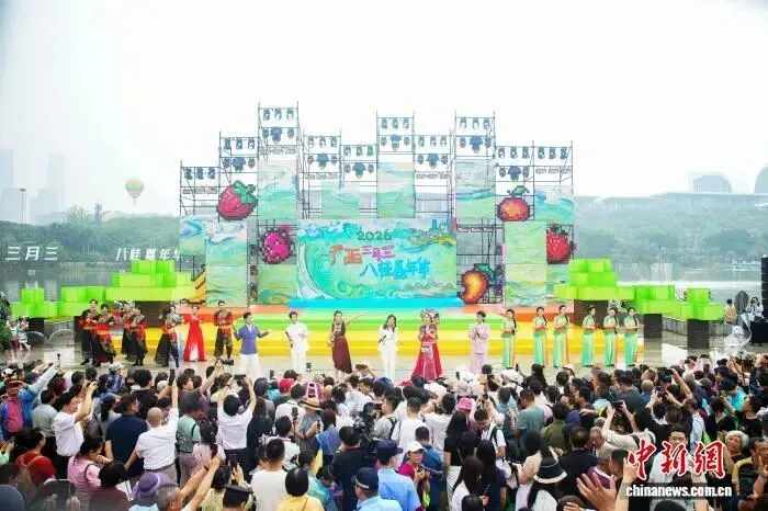 这是2026年“广西三月三·八桂嘉年华”文化旅游品牌活动中的一幕。当日,这场以“三月三 趣广西”为主题的春日盛会启幕,带领民众走进一场“刘三姐”与人工智能(AI)的深度邂逅。