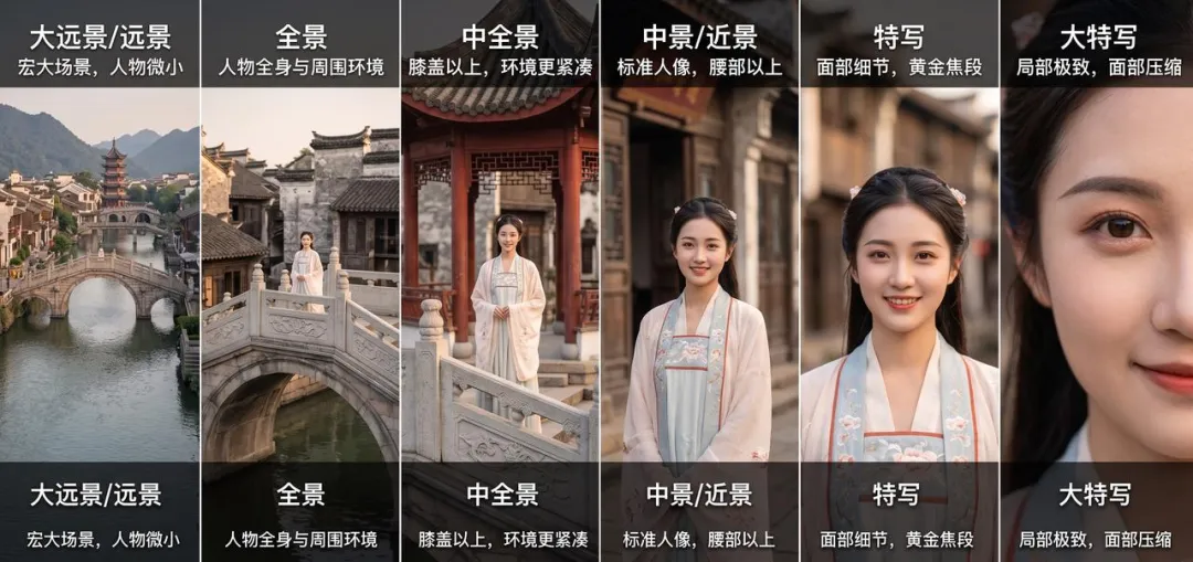 景别 | 画面范围 | 适用场景 |