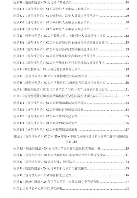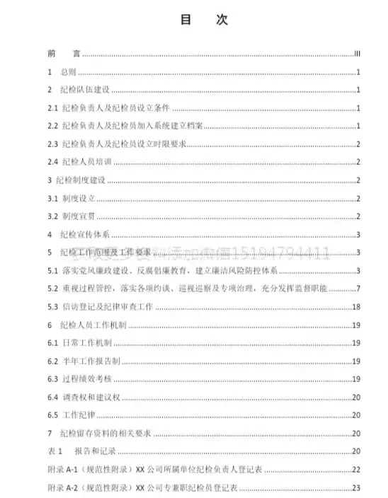 共154页,内容包括纪检队伍建设、制度建设、宣传体系、工作范围、工作要求、工作机制、资料归档等,附录齐全,适合企业纪检监察、合规管理、内控学习参考。