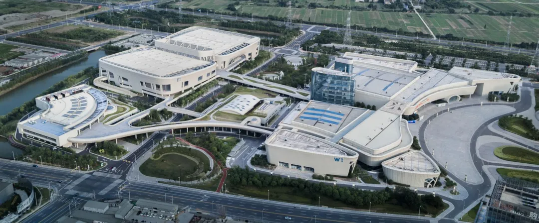 泰州中国医药城会展中心展现了时匡对产业建筑的创新思考。会展中心占地 12.5 公顷,分为一期和二期,在规划上充分考虑两期的统筹设计,形成连续、立体的会展空间。