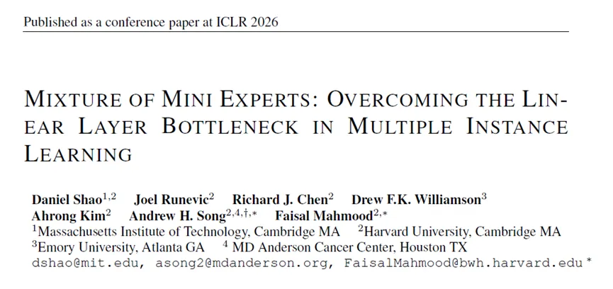 近日,哈佛医学院Faisal Mahmood教授团队(该团队曾开发过CLAM、UNI、CONCH等一系列病理AI标杆性工作)发布了他们的最新力作:MAMMOTH。这篇文章恰恰是从MIL中这一步看似不起眼的线性映射入手,为此设计了一个可插拔的混合专家(Mixture-of-Experts, MoE)模块,用来替换标准MIL中普遍存在的初始线性层。