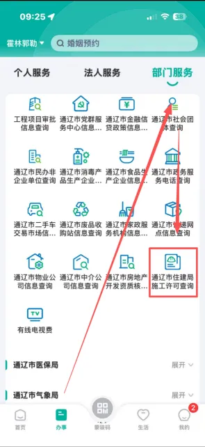 蒙速办APP操作指南丨通辽市住建局施工许可查询一、打开“蒙速办”APP首页,点击“办事”“部门服务”“通辽市住建局施工许可查询”。二、输入工程名即可查询施工许可。撰 稿:赵 冕编 辑:姜 阳审 核:徐淑霞总 审:王 莹