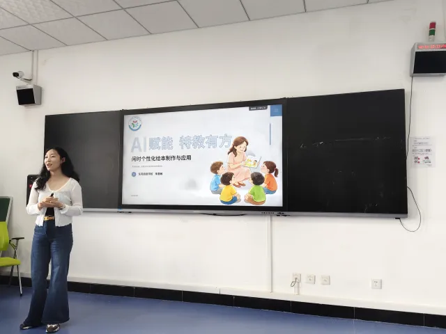 活动伊始,刘太祥名师工作室成员为大家带来人工智能在孤独症儿童教育康复中运用的案例分享及AI绘本制作实操演示。两位老师结合案例详细讲解了如何利用AI技术生成个性化教学内容、特色绘本帮助特殊儿童更好的学习,让在场教师们直观感受到AI工具在提升特殊儿童教学的趣味性和针对性上的独特优势。