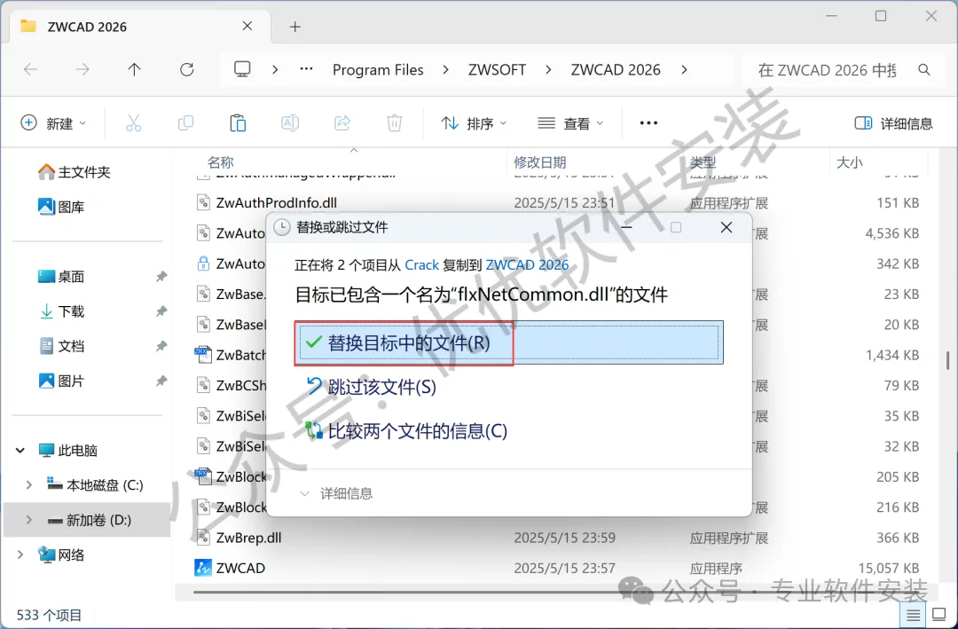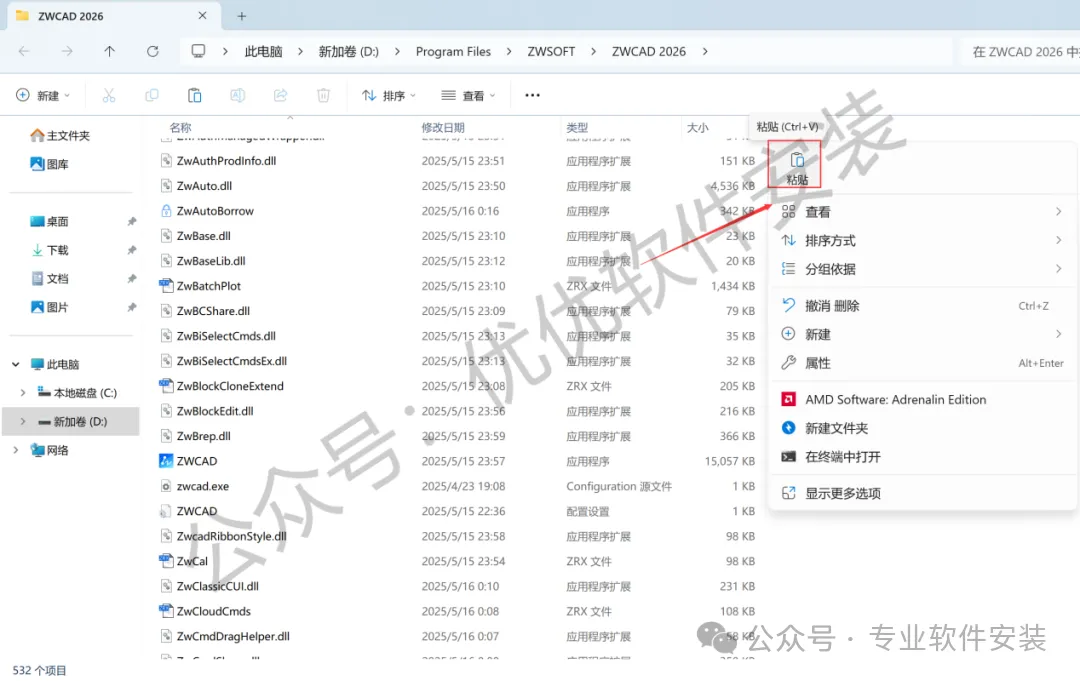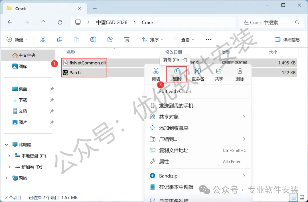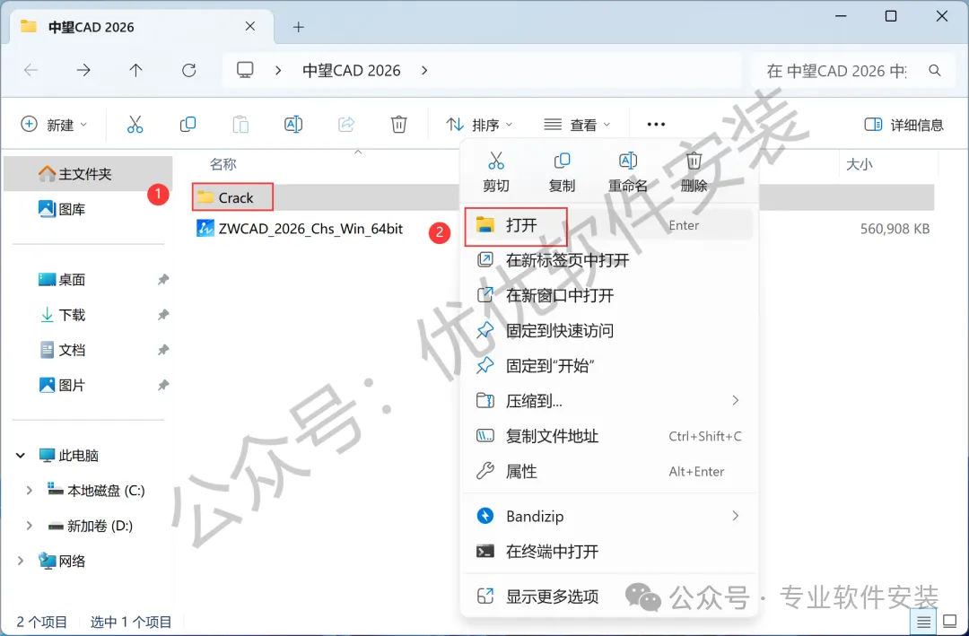 8、回到中望CAD 2026文件夹,找到【Crack】文件夹,右键【打开】它