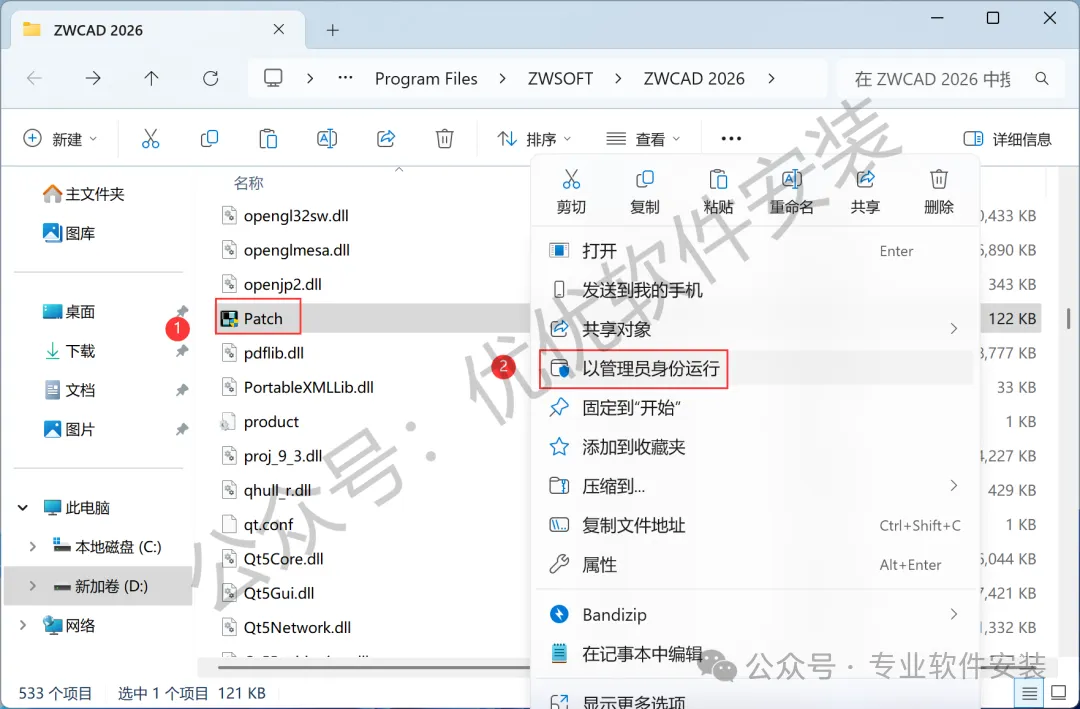 3、找到【ZWCAD_2026…】应用程序,右键选择【以管理员身份运行】它