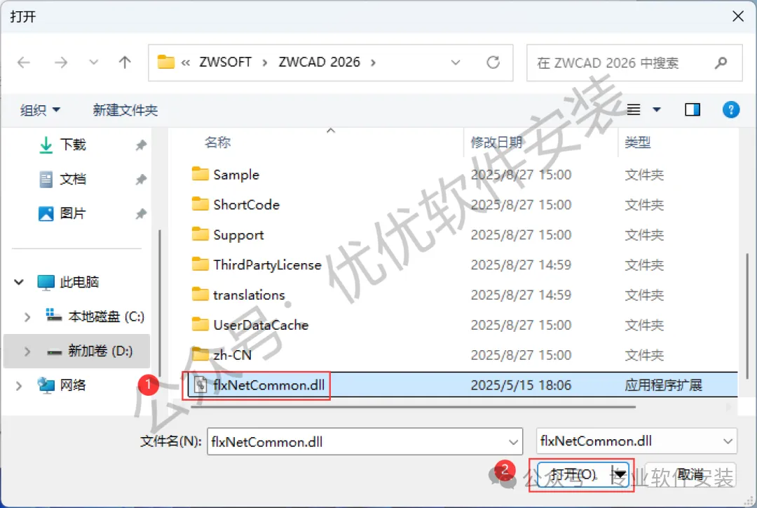 16、找到并选中【flxNetCommon.dll】文件,再点击【打开】