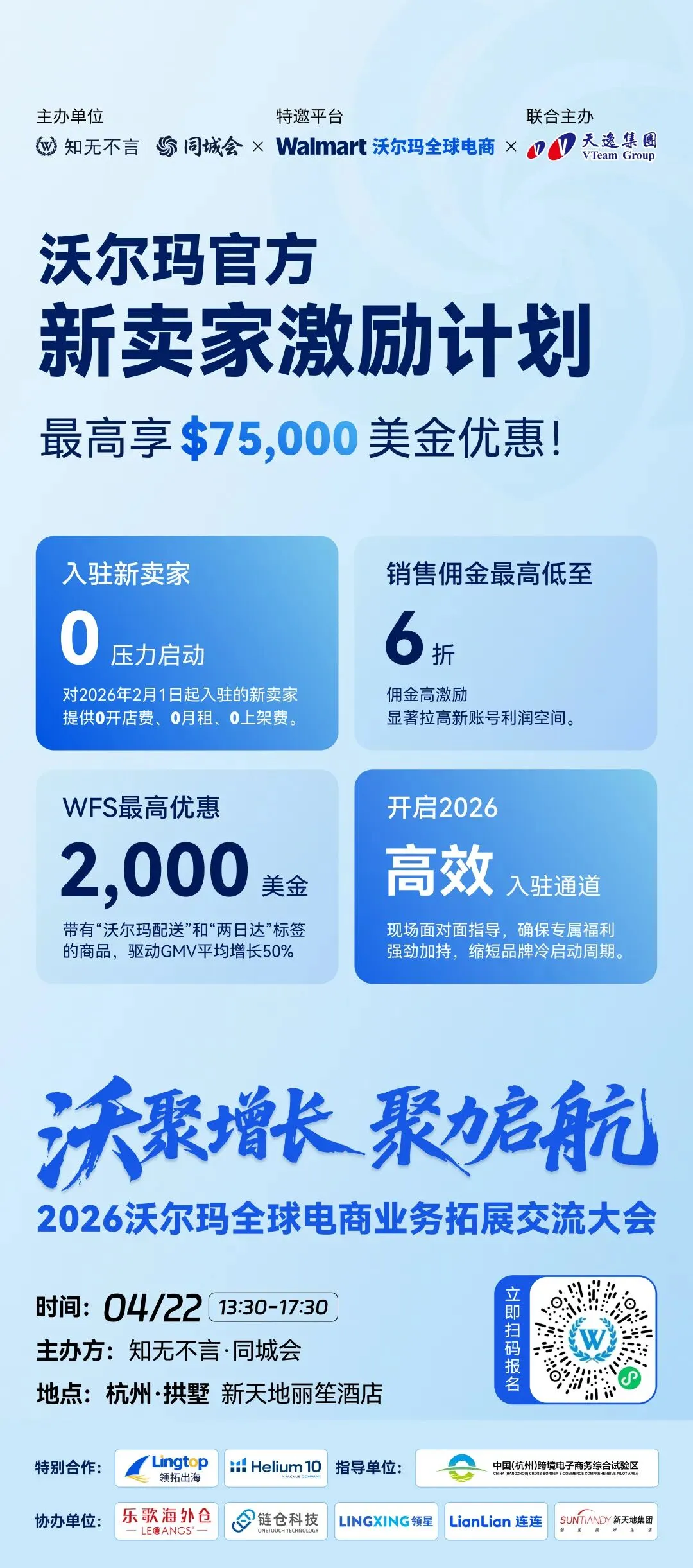 倒计时2天!沃尔玛全链路爆款增长逻辑+新卖家入驻最高 $75000 扶持金、500美金广告抵用金…免费参会得福利