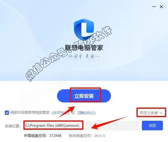 3.点击“自定义安装”设置,选择软件安装路径,建议和教程中的保持一致,本例默认安装(将路径地址中的首字符C改为D表示安装到D盘,安装路径不要出现中文),勾选“阅读....”,点击“立即安装”