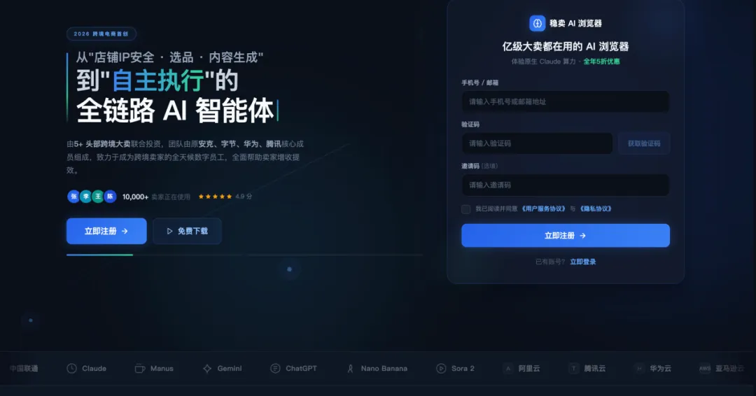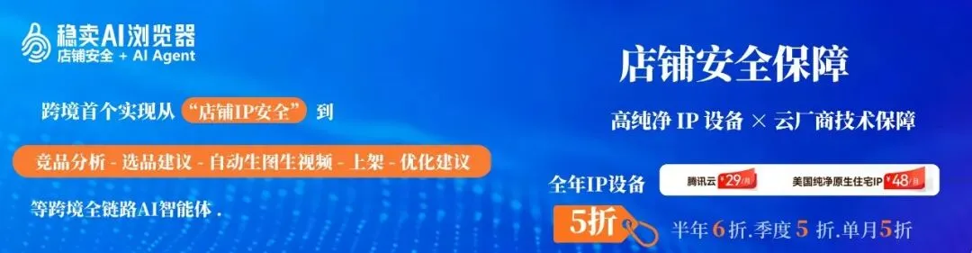 稳卖AI 浏览器是跨境首个实现从 " 店铺IP安全 " 到" 评论分析、选品决策、内容生成、自主执行 " 的全链路AI 智能体,致力于成为跨境电商领域的「数字员工平台」和「经营操作系统」。