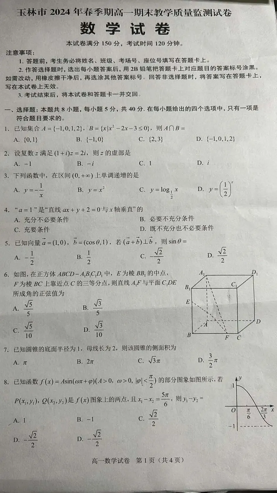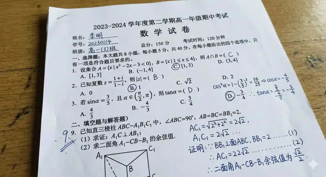 来看一份高中数学试卷: