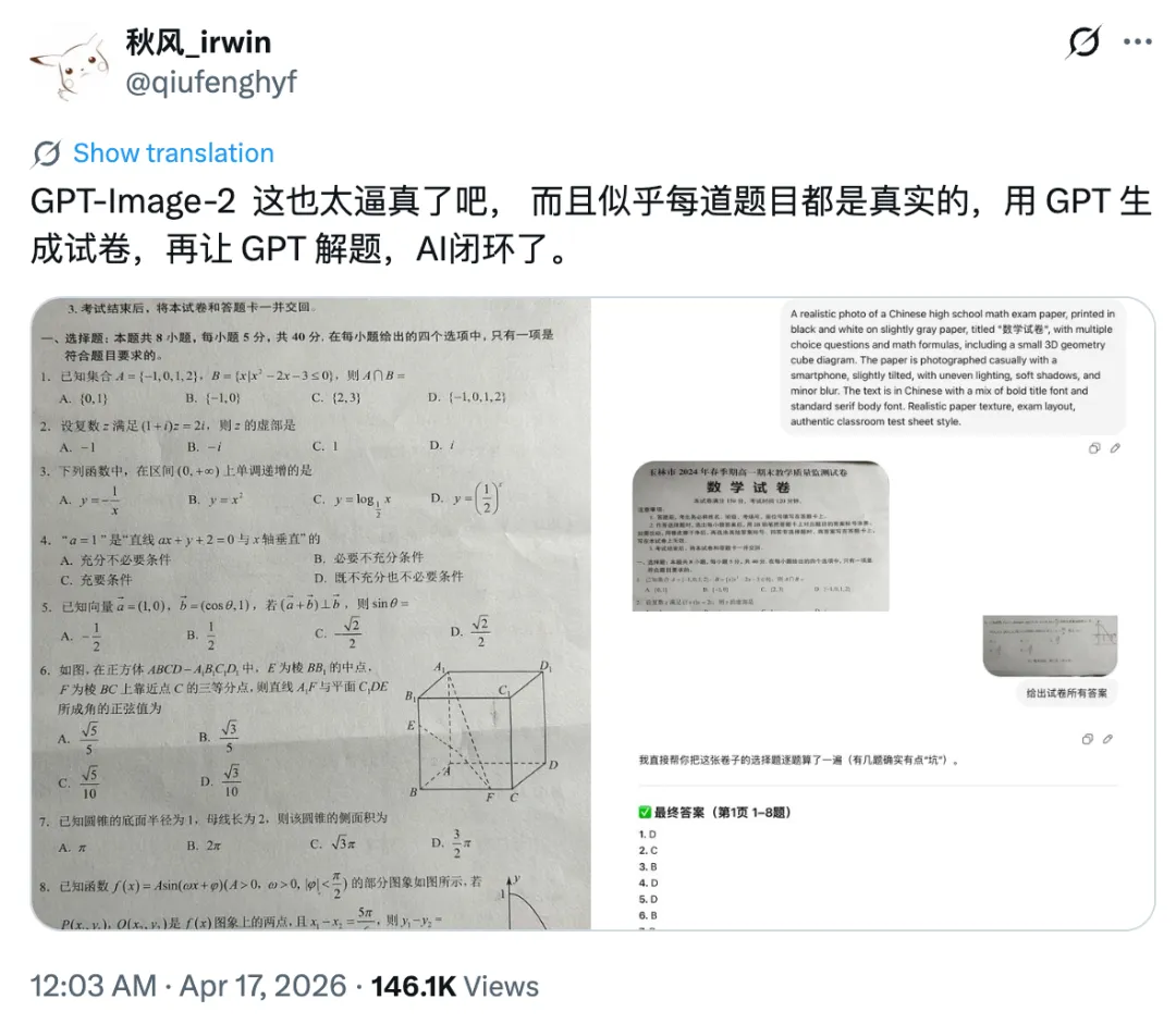 这是来自X上一位推友分享使用GPT最新模型GPT Image 2生成的图片:
