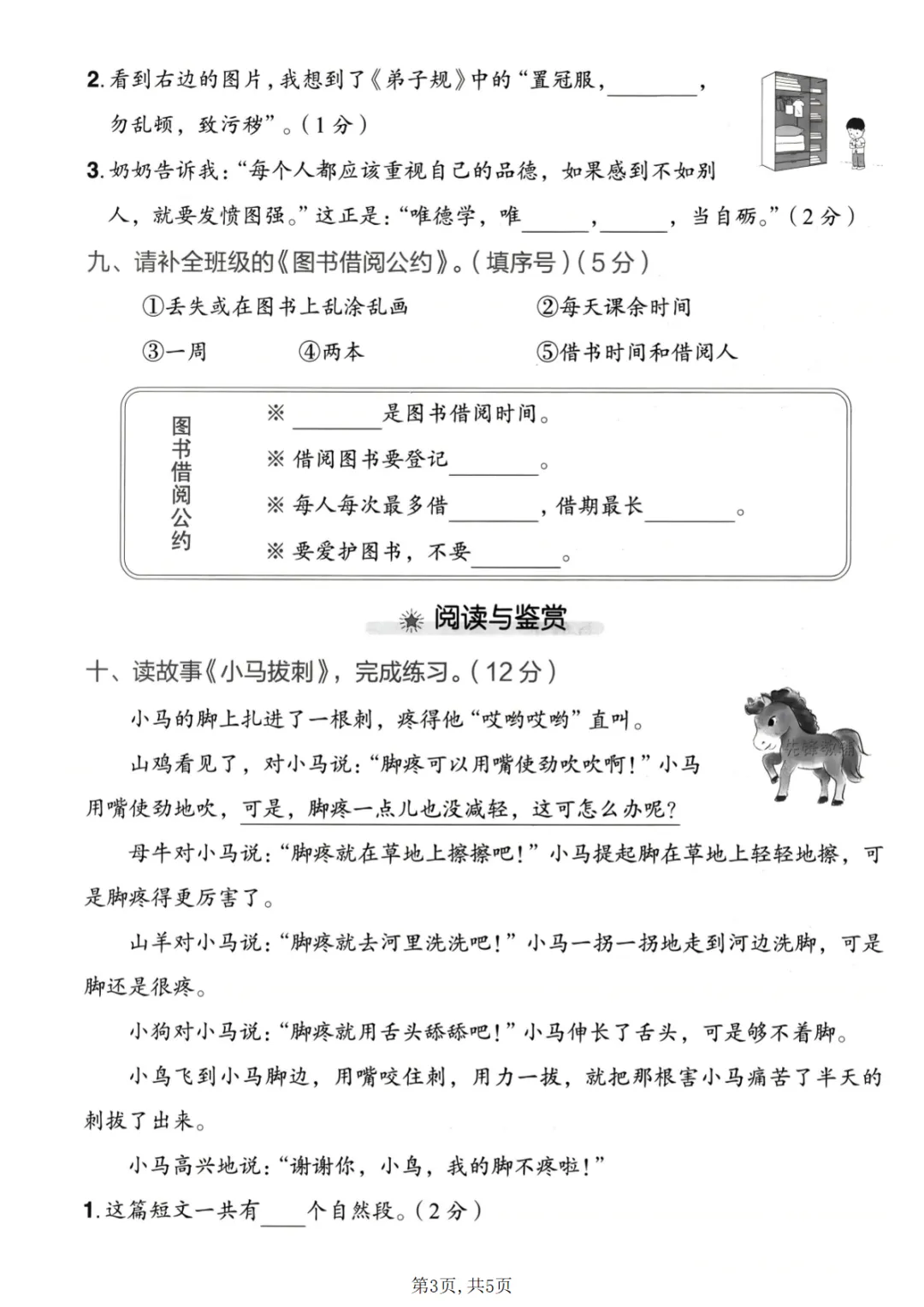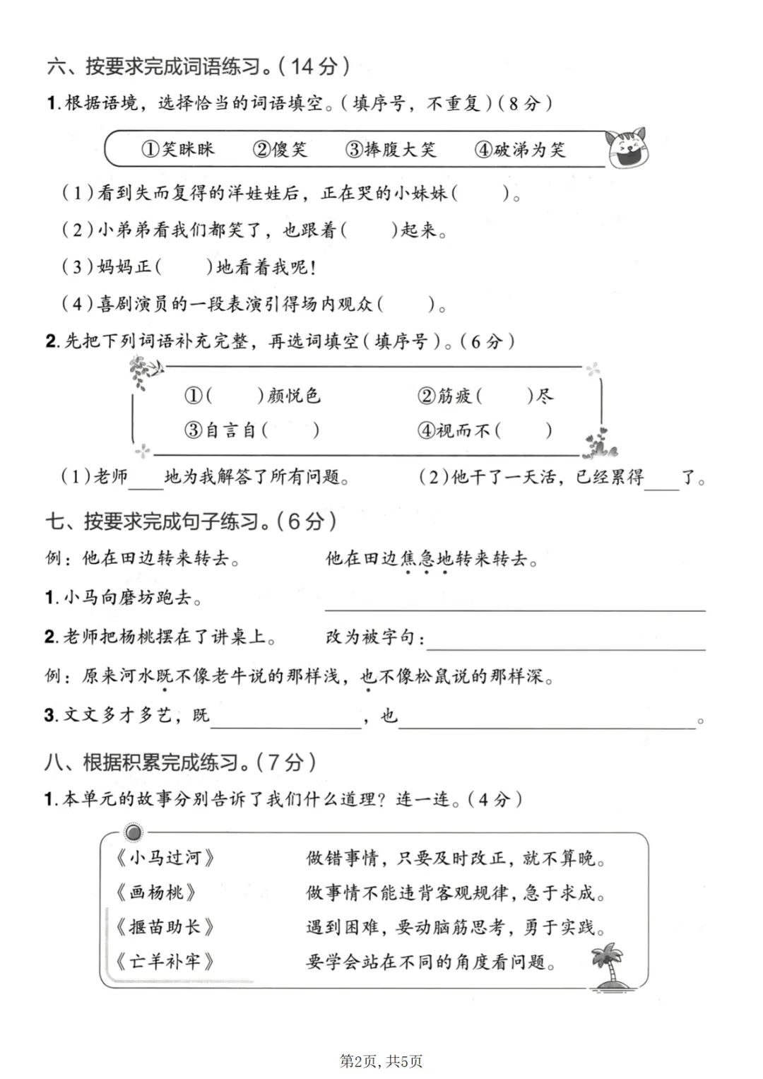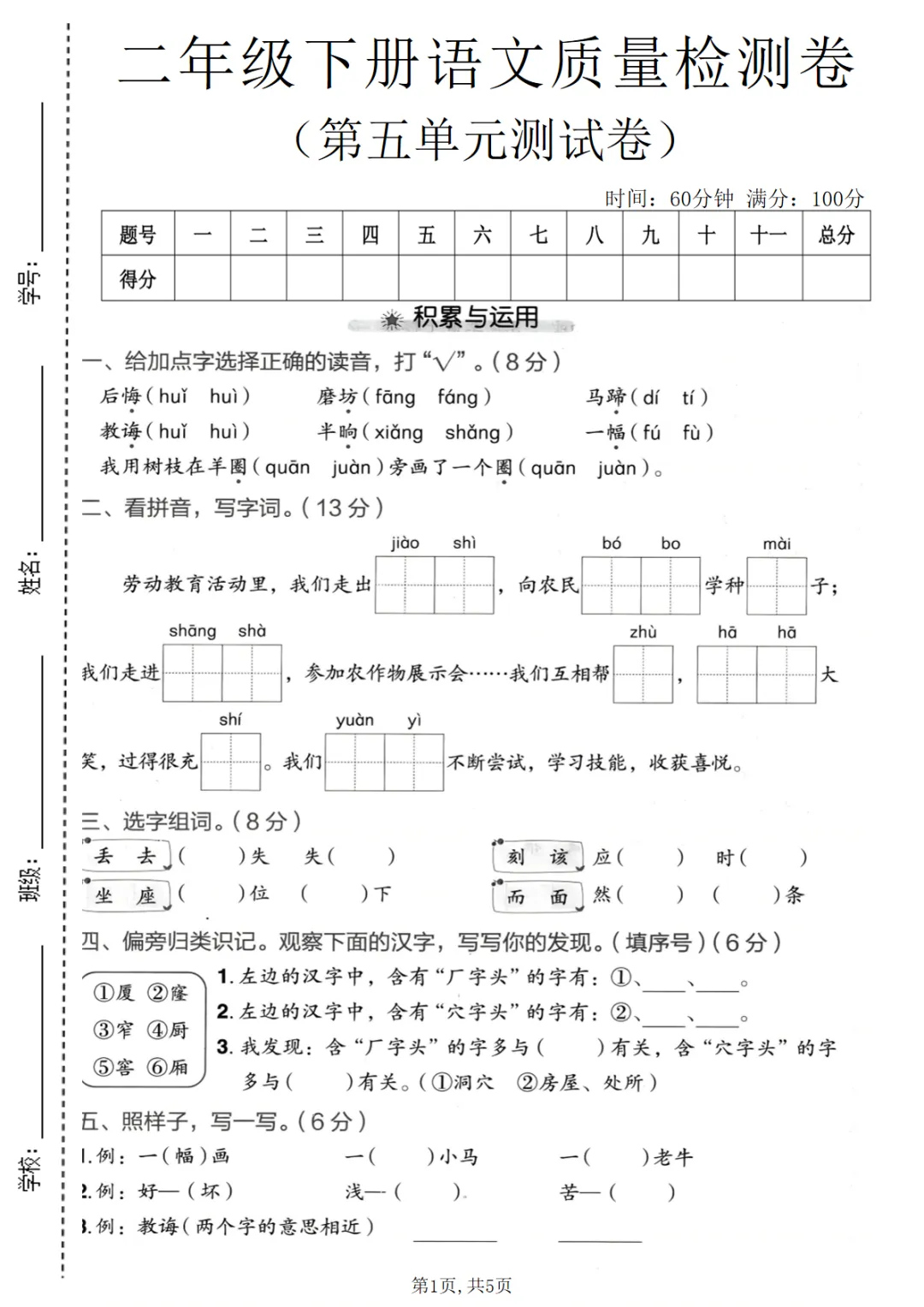 二年级(下)语文第五单元质量检测卷