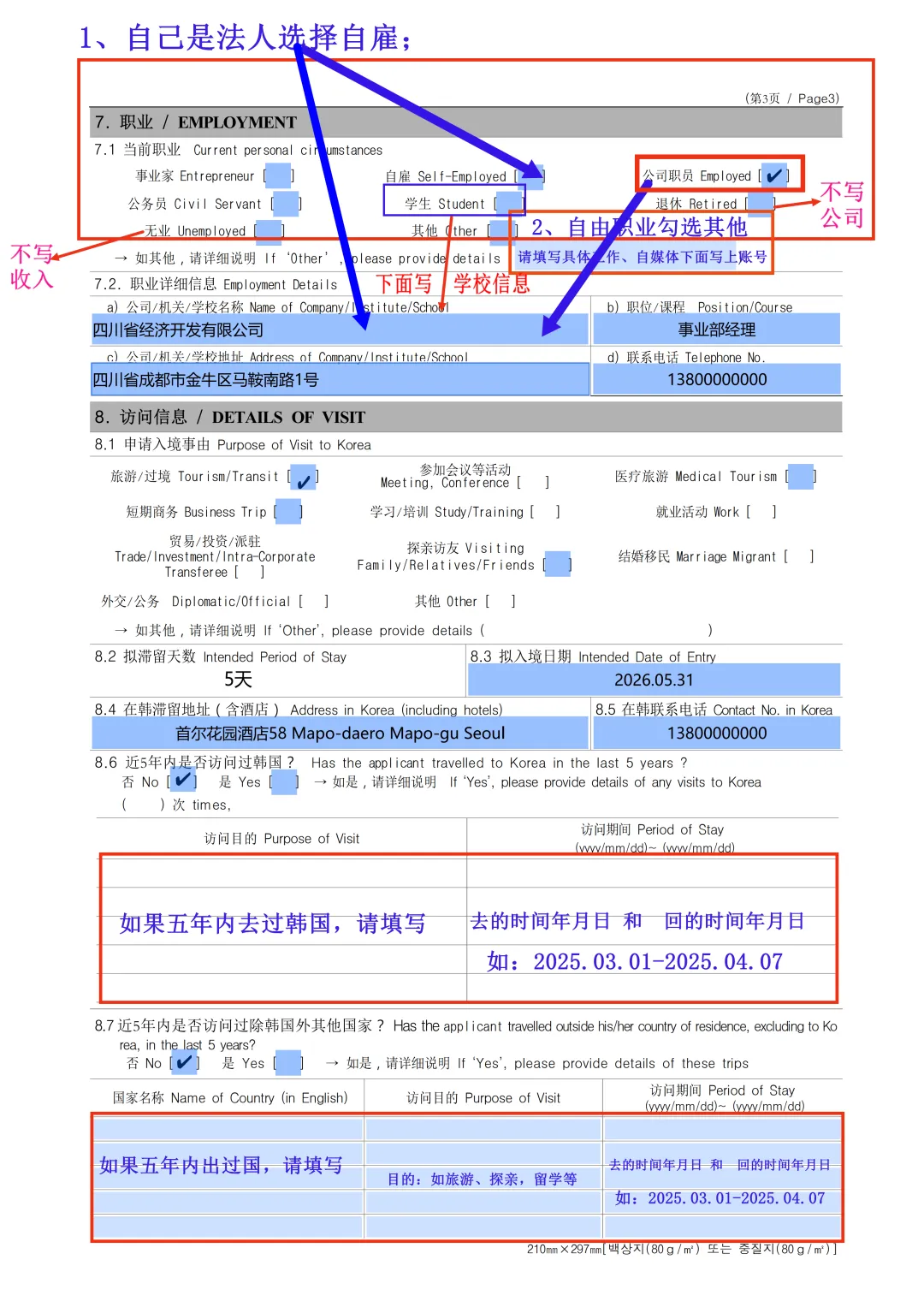 【韩国签证申请表填写模板】韩国签证不同身份怎么填写申请表,看下面;【韩国签证申请表填写模板】韩国签证不同身份怎么填写申请表,看下面;