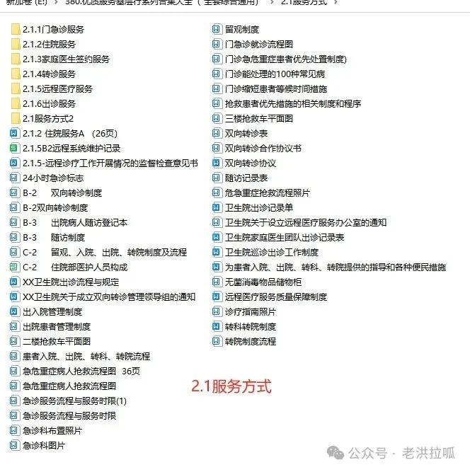乡镇卫生院100条,社区卫生服务中心90条,全部是模板,按照实际需求简单修改即可。