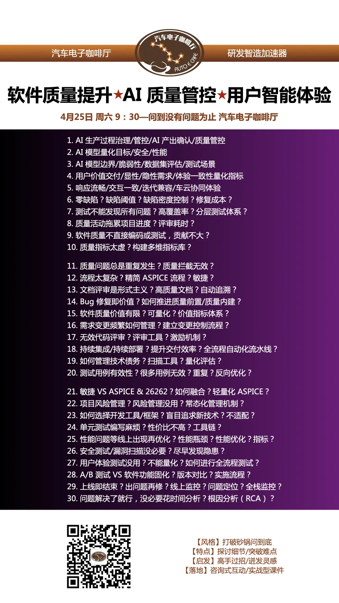 【深度课程】软件质量提升/用户体验/AI质量管控/AI重构项目管理/ASPICE裁剪/减少bug/代码优化/测试