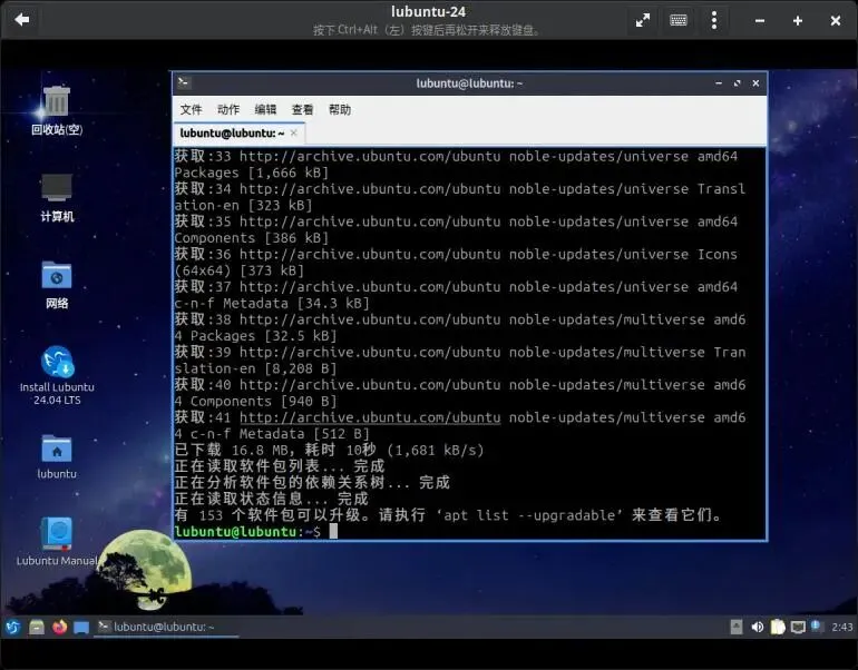 Lubuntu 24.04.4 搭载了 LXQt 1.4 桌面环境,带来了更优的资源调度和启动速度。更重要的是,它作为 Ubuntu 24.04.4 家族的一员,升级到了 Linux 6.17 内核和 Mesa 25.2 图形栈,这意味着对新硬件的支持更好,老硬件的兼容性也更稳定。比如在虚拟机中,我的显卡被自动识别并装好驱动,省去了不少麻烦。 💡 核心解读:Lubuntu 24.04.4 的发布策略是“重底层,轻上层”。它没有炫酷的新功能,而是把重点放在了稳定性、安全性和硬件兼容性上,特别适合追求稳定、不想频繁折腾的用户。